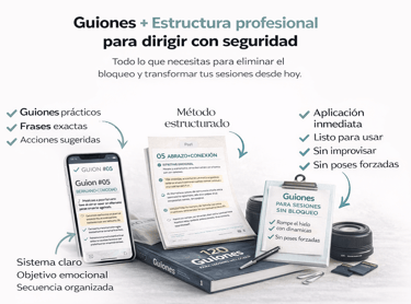 Los guiones están diseñados para ser claros, estructurados y listos para usar, tanto para fotógrafos principiantes como para profesionales que desean mejorar su dirección.